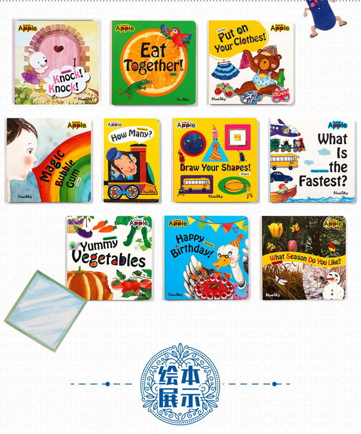 这是一套为小孩子准备的启蒙绘本套装书:本套书涉及生话的方方面面。有动物篇,水果篇,服饰篇,颜色篇,形状篇,数字篇,蔬菜篇,生日篇,季节篇,交通工具篇,基础知识一手掌握,好看又好玩。